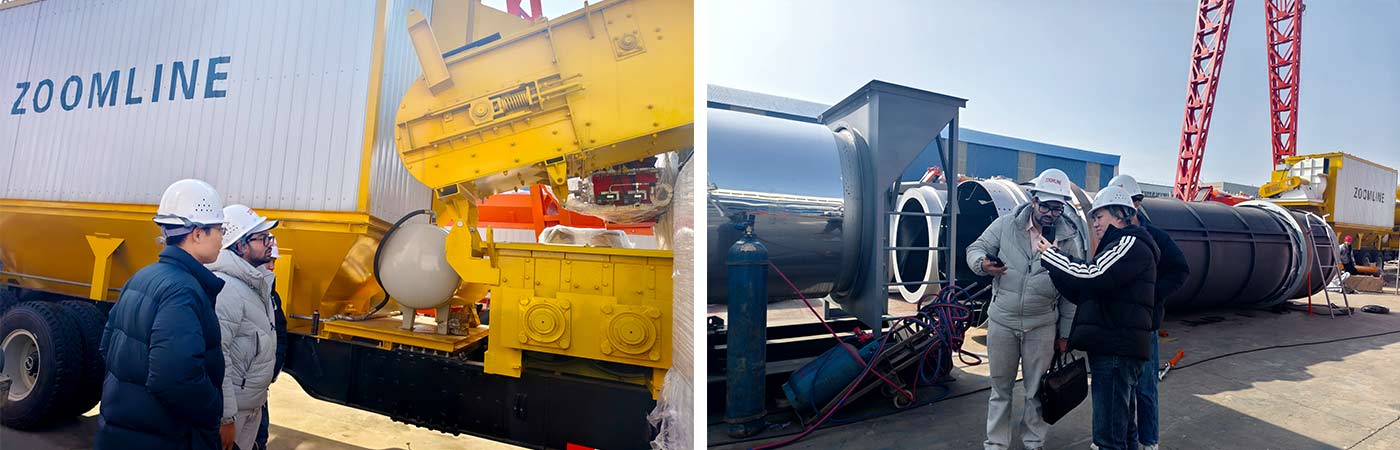 来访期间,客户代表团在我方陪同下,参观了生产车间与设备展示区,近距离了解再生沥青搅拌设备的生产流程与核心优势,我方技术人员重点介绍了设备高比例再生利用、智能化控温搅拌等亮点,以及其在公路养护中的实用价值,贴合印度绿色基建与成本控制需求。