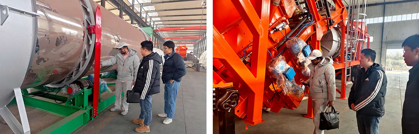 来访期间,客户代表团在我方陪同下,参观了生产车间与设备展示区,近距离了解再生沥青搅拌设备的生产流程与核心优势,我方技术人员重点介绍了设备高比例再生利用、智能化控温搅拌等亮点,以及其在公路养护中的实用价值,贴合印度绿色基建与成本控制需求。